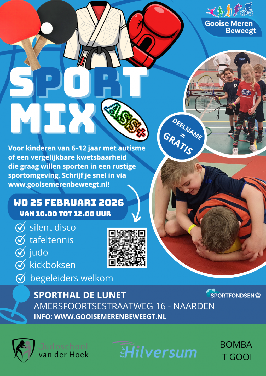 De SportMix ASS+ wordt mede mogelijk gemaakt door Judoschool Van der Hoek, TTV Hilversum en BOMBA T GOOI.